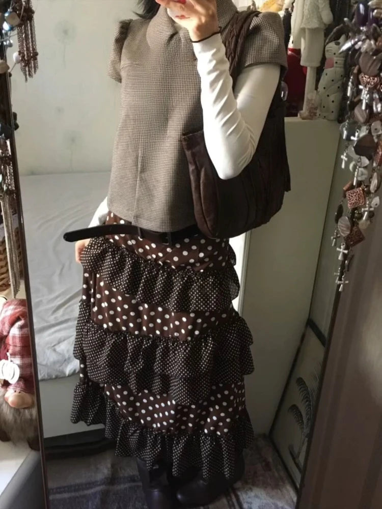 New 2026 Vintage Polka Dot Patchwork Skirt Women Japanese Fashion Sweet Irregular Cake Skirts Aesthetic Fit Chic Retro Clothing