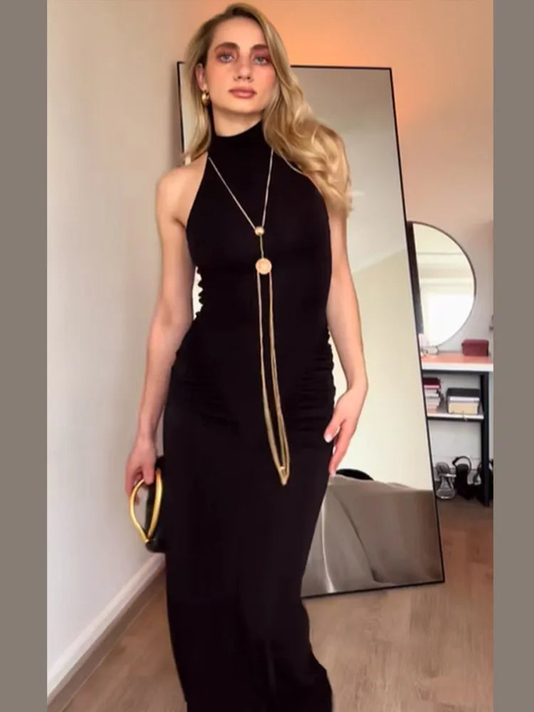 Elevate your evening look with the sophisticated metal chain detail, thoughtfully placed to create a striking visual contrast.